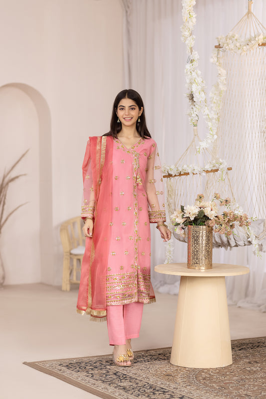 DESCRIPTION: AngrakhaEmbroidered With Embellishment Fabric: Net Color: Pink Fit: Regular Undershirt Dyed Sleeveless UndershirtFit: RegularColor:...