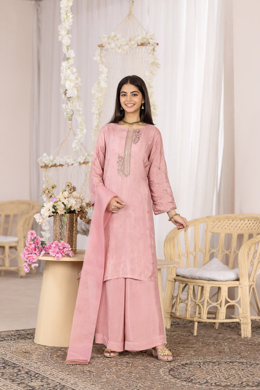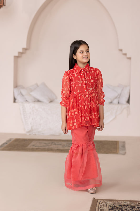 DESCRIPTION: Top Embroidered Fabric: Net Color: Carrot Fit: Regular Undershirt: Attached Gharara: Elasticated WaistbandFit: RelaxedFabric:...