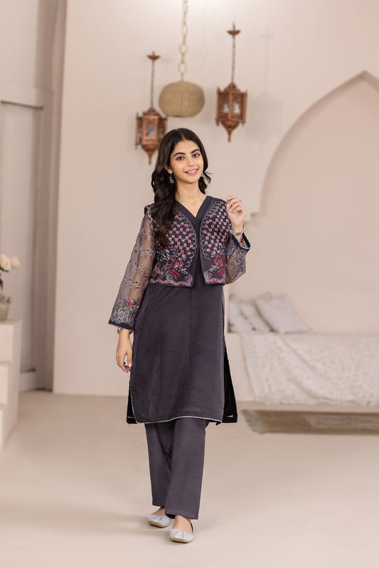 DESCRIPTION: Jacket Embroidered With Embellishment Fabric: Organza Color: Gray Fit: Regular Undershirt Dyed Sleeveless UndershirtFit:...