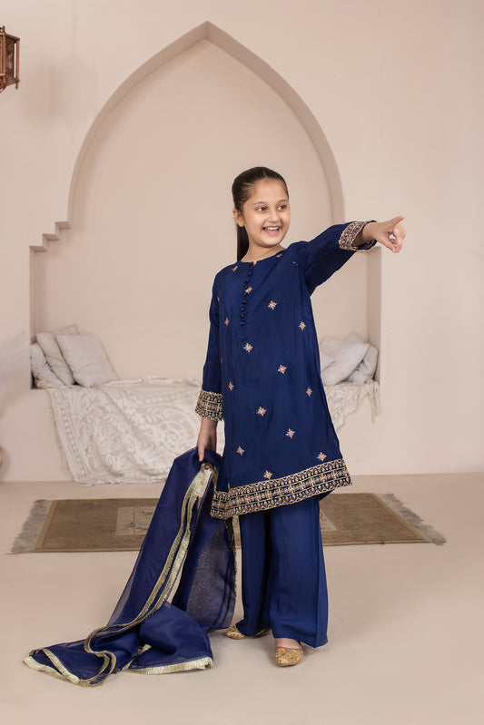 DESCRIPTION: Shirt Embroidered With Embellishment Fabric: Raw Silk Color: Navy Fit: Regular Sharara Sharara Fit: RegularColor:...