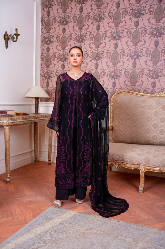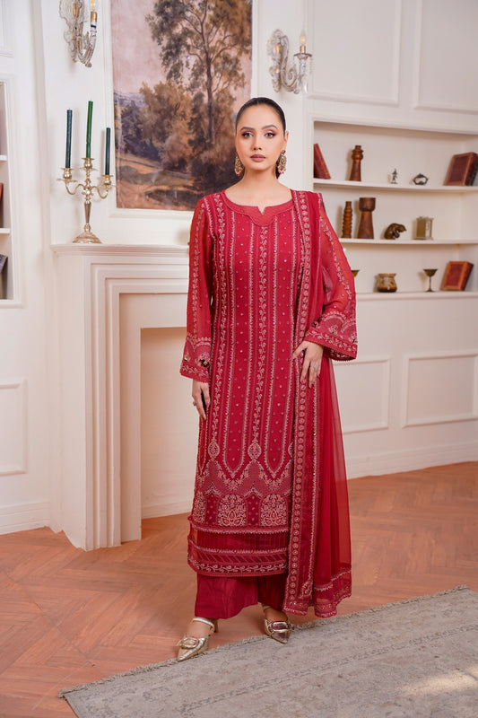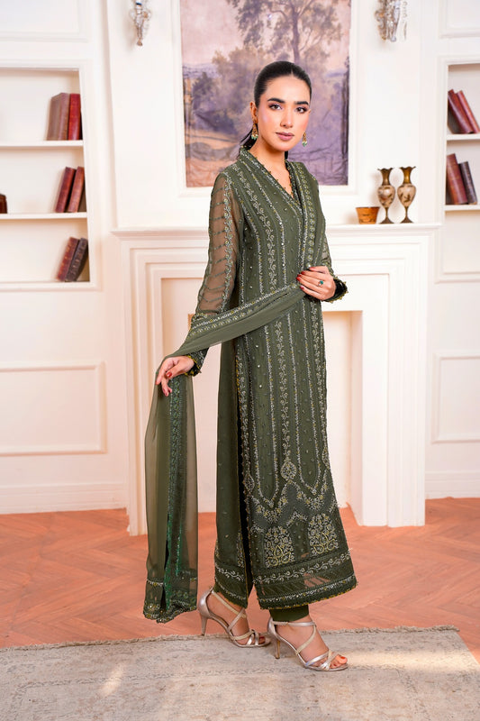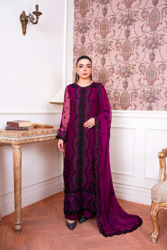 Pearl Aurora – Unstitched Luxury Festive Package Contents Shirt Front: Full intricately hand-embellished luxury chiffon...