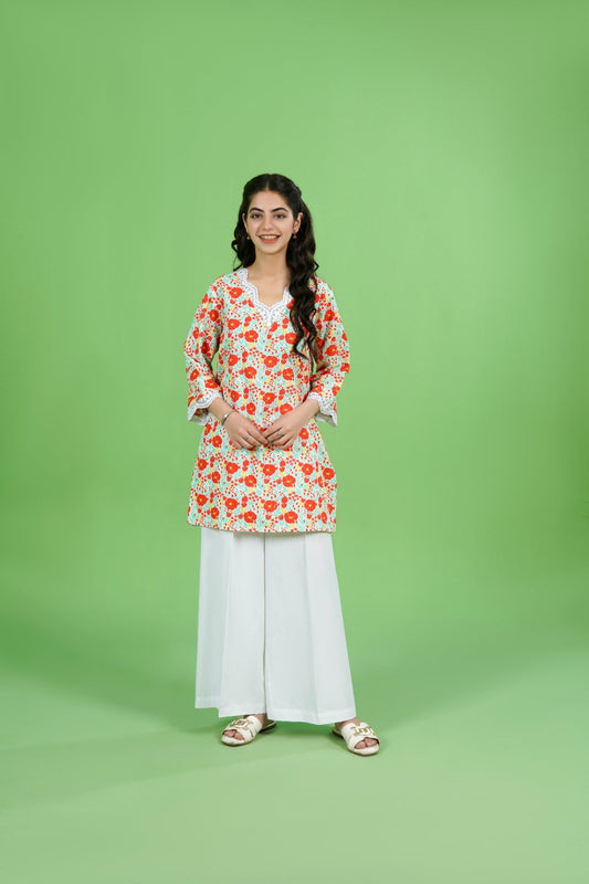 Botanical Beauty with Fine Embroidery The Green Rosé Short Shirt is a masterpiece of modern...