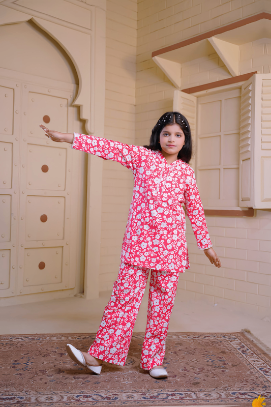 The Aira Sparkles set features an all-over floral print in a cheerful pink and crisp...