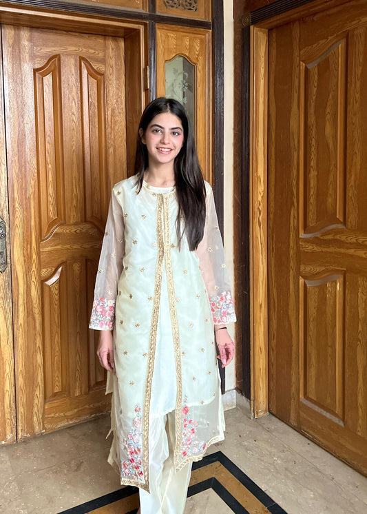 Leafline | Off-White Pishwas Set Product Type: 2-Piece Stitched Ensemble (Pishwas & Plazzo) Fabric:...
