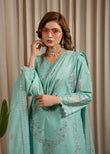 It is paired with a coordinated lawn trouser and a light, airy chiffon dupatta, finished with delicate lace on all four sides, completing the look with effortless elegance. Perfect for summer festivities, events, and graceful gatherings