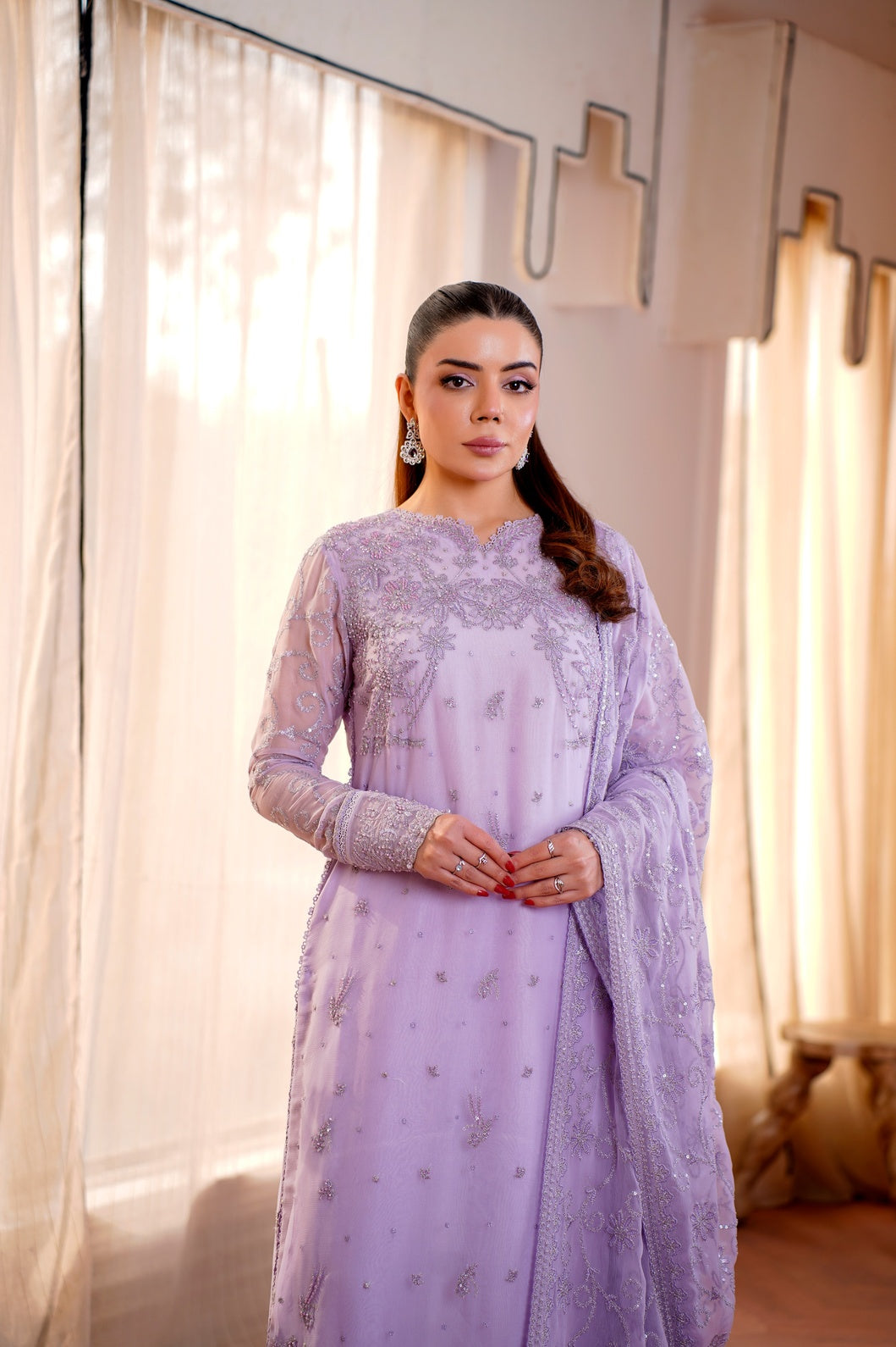 • Dupatta: 2.5 yards embroidered luxury chiffon dupatta with four-sided scalloped borders and lace finish