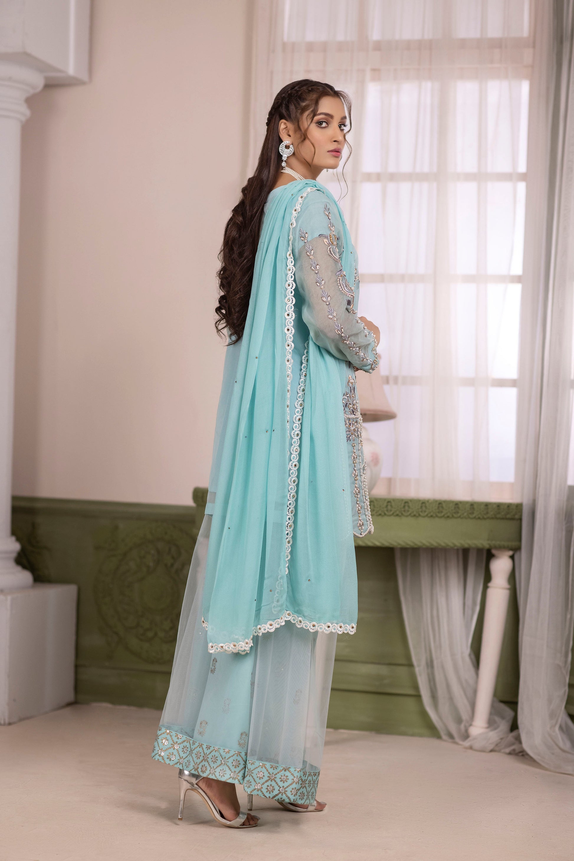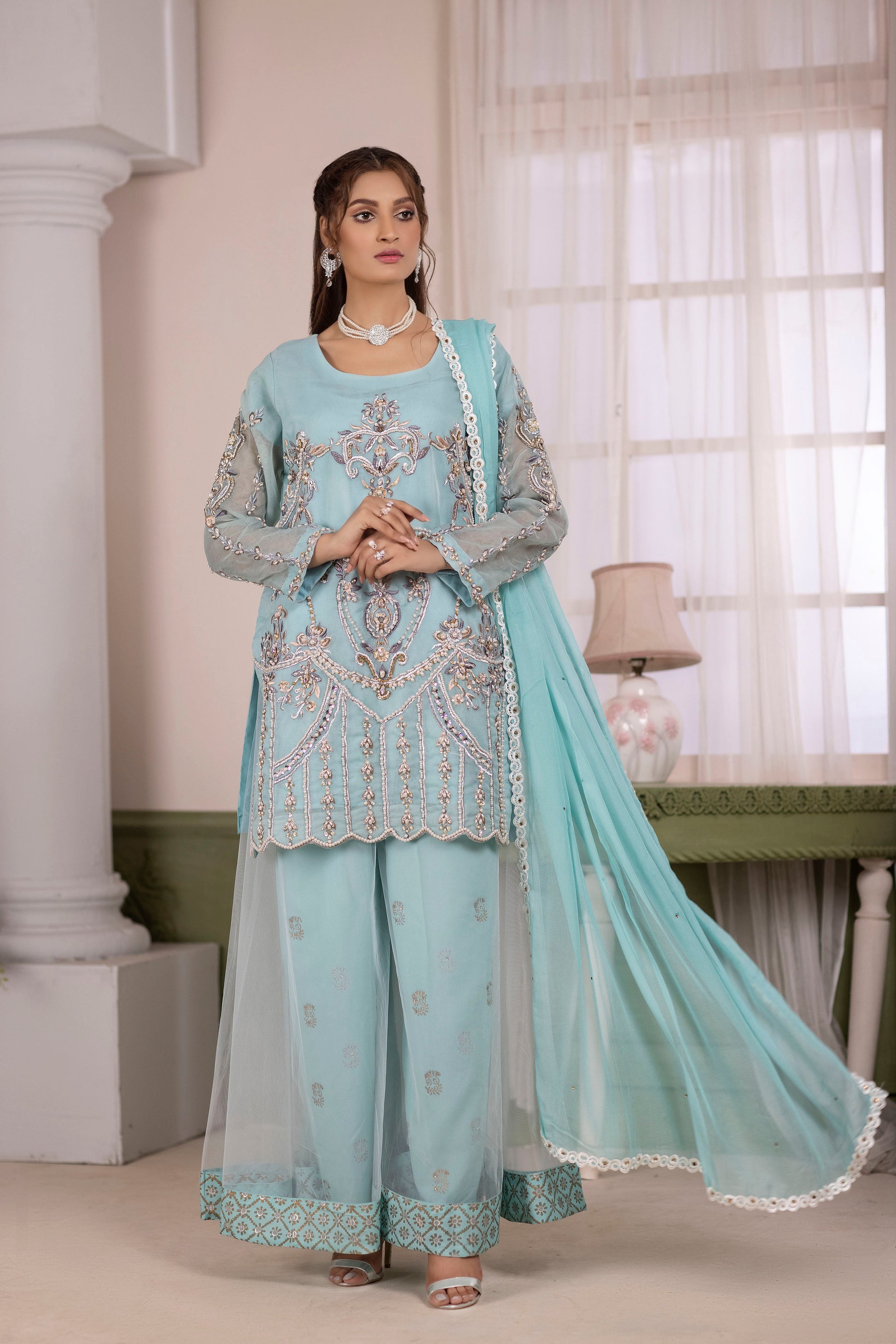 Details: Pure Organza Shirt With Work of Stone, Pearls, Kora, Dabka, Sequences ,Kat Dana