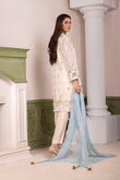 DOPATTA: AQUA CHIFFON DOPATTA WITH BLOCK PRINT AND BEAUTIFUL TUSSLES