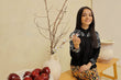 The top is crafted from a luxurious, soft black fabric featuring a classic collar