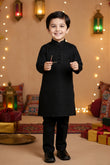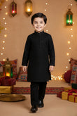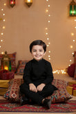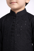Boys Festive Kurta Set, Tonal Embroidered Kids Wear, Sparkles Pret Festive Collection, Designer Kurta for Boys Pakistan, Embroidered Party Wear for Kids, Black Festive Suit for Boys.