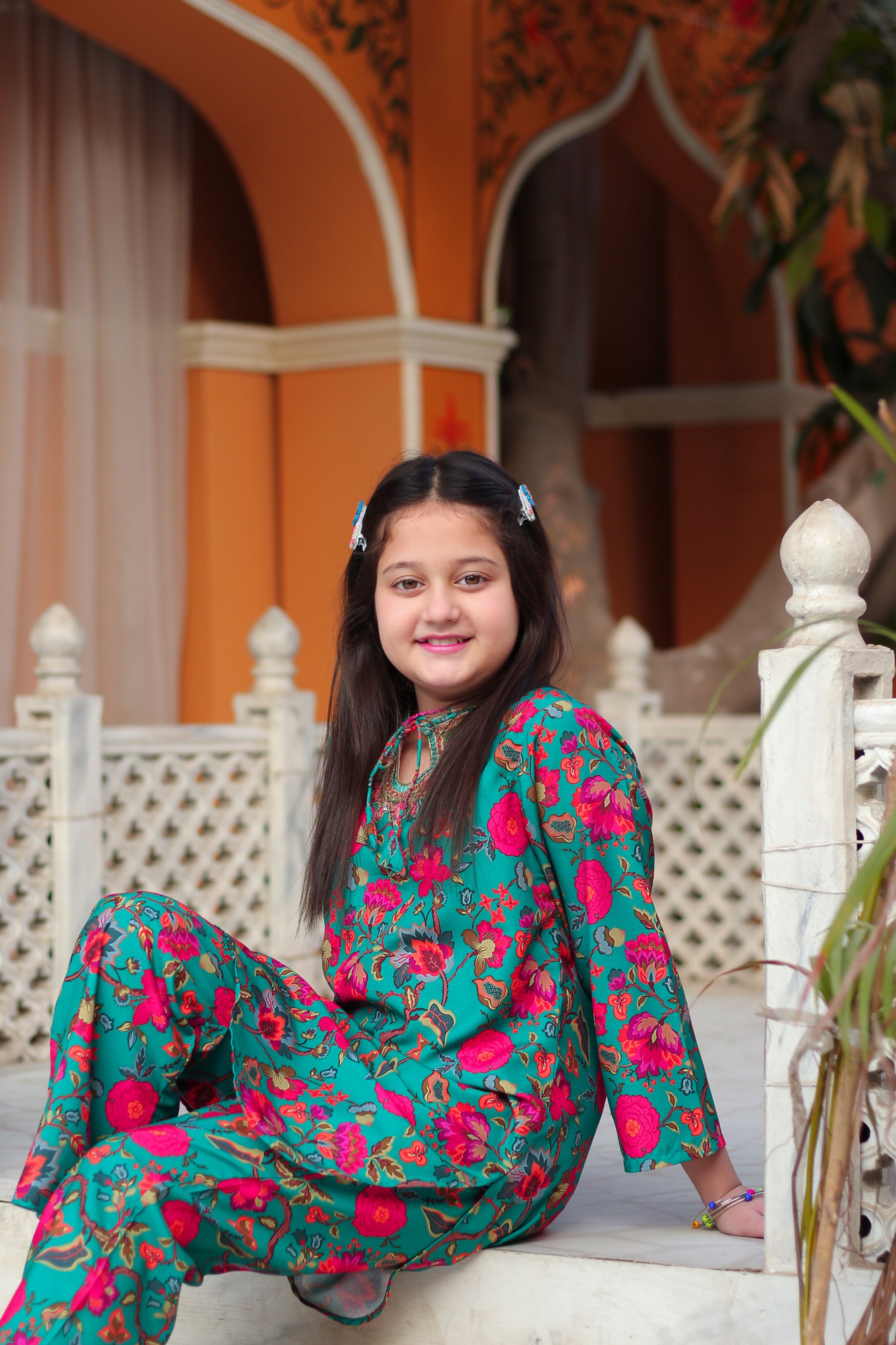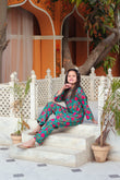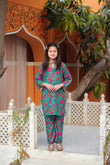 The Green Rosé Short Shirt is a masterpiece of modern ethnic wear. This 2-piece set elevates a refreshing botanical digital print with a delicate embroidered neckline, making it the perfect choice for festive gatherings and formal lunches.