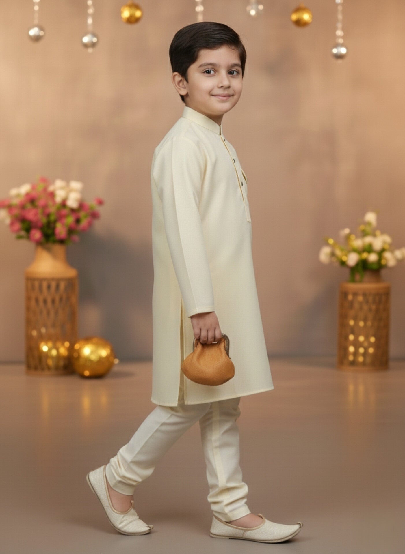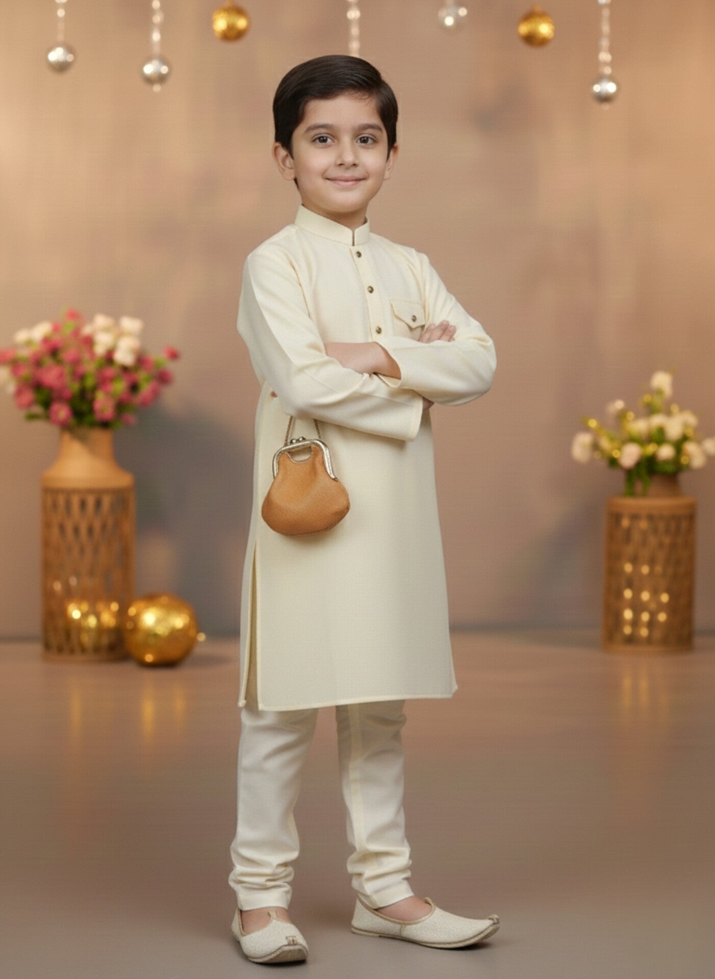 Pasha Prince – Rich Cream Wash & Wear Kurta Pajama Set